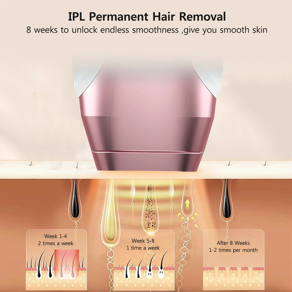 Introducing the Laser Epilator, the painless and permanent solution for unwanted hair. Our IPL technology safely removes hair from the body, bikini, legs, and arms with 999999 flashes, making it the most efficient hair removal device on the market. Say goodbye to tedious and costly hair removal methods and hello to smooth and flawless skin.