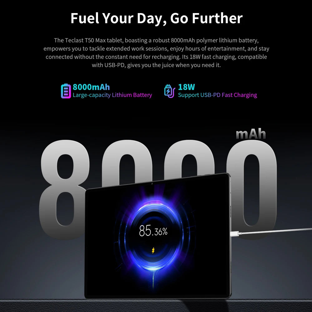 Teclast T50 Max Tablet 11" 90Hz Display ,Android 14 MTKG99 8GB 256GB 4G LTE 8000mAh 18W Fast Charging.