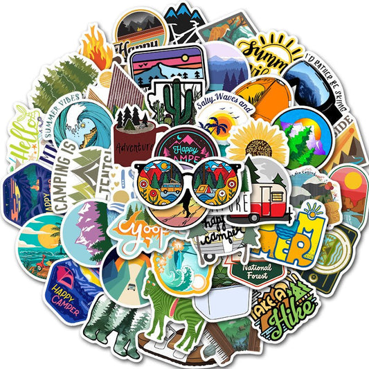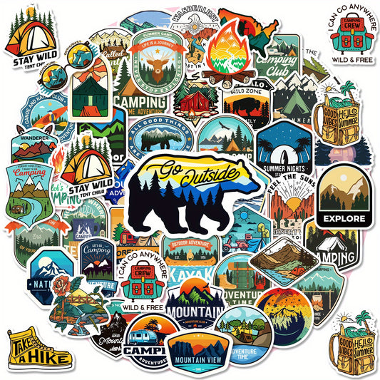 Hiking Adventure Camping Stickers Pack-50pcs For Water Bottle Laptop Cup Car