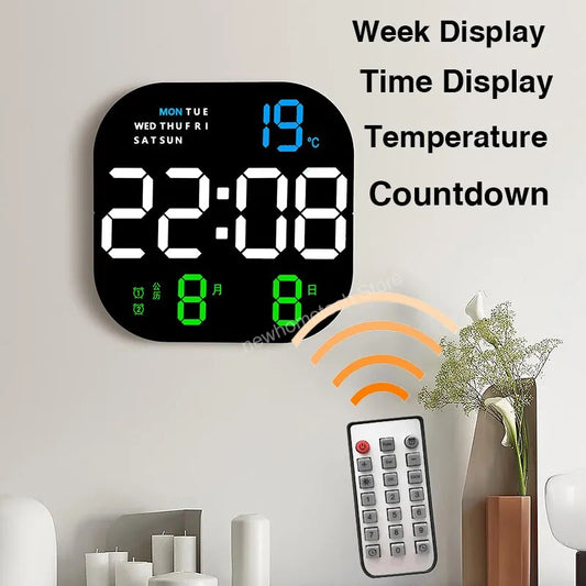 LED Digital Wall Clock Large Screen Temperature Date Day Display