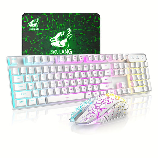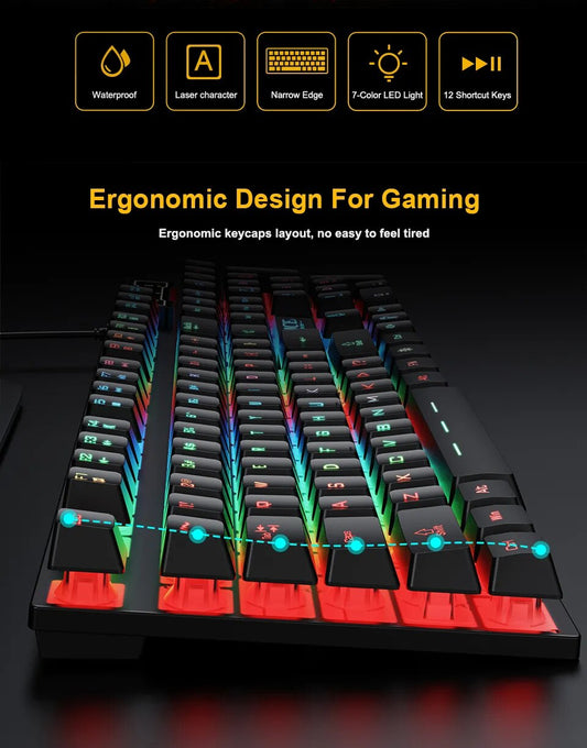 RU ES Language RGB Gaming Keyboard and Mouse Kit Backlit USB Wired Computer Keyboard Mouse Combo 104 Keycaps for Pc Gamer Laptop