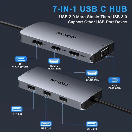 8 in1 Laptop Adapter USB C HUB Type C-4- 3 Docking Station Laptop
