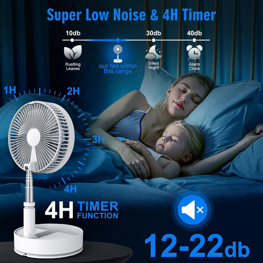 Portable Electric Fan Folding Telescopic Floor Standing USB Rechargeable Mini Brushless Fan for Home Office Air Conditioner