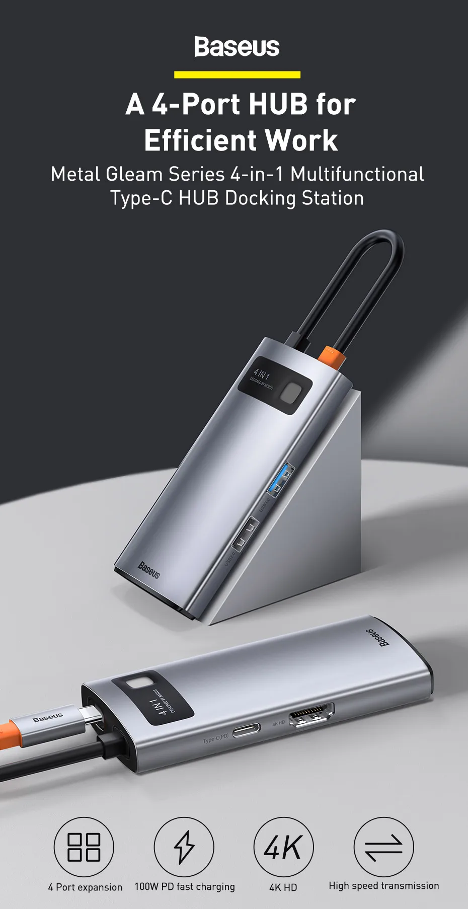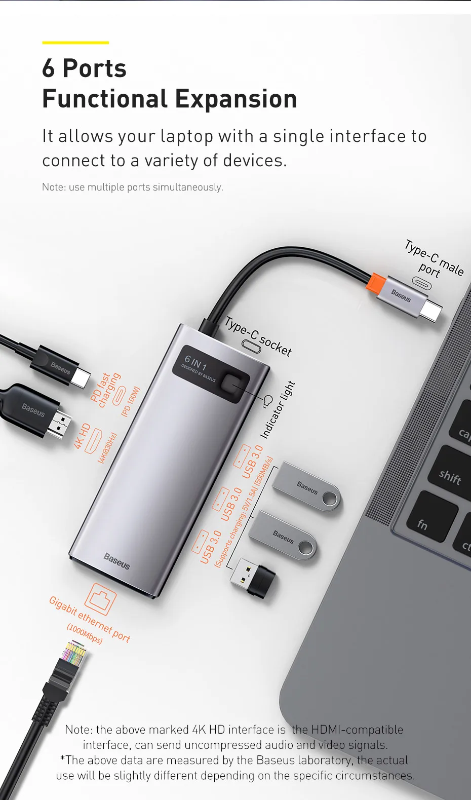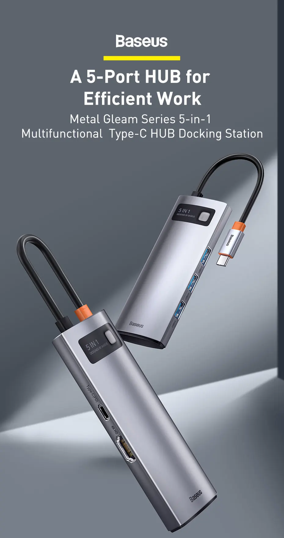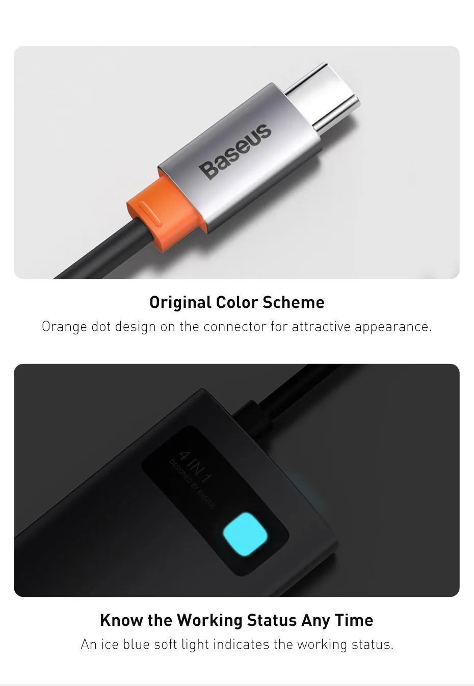 Boost your productivity with the Baseus USB Hub. This versatile device combines the power of HDMI-compatible 4K display, superfast USB 3.0 ports, and high-speed charging with Type C PD 100W. Perfect for MacBook Pro Air M1, enjoy 8/6/5/4 ports in one sleek and compact hub. Get amazing versatility and convenience all in one HUB.