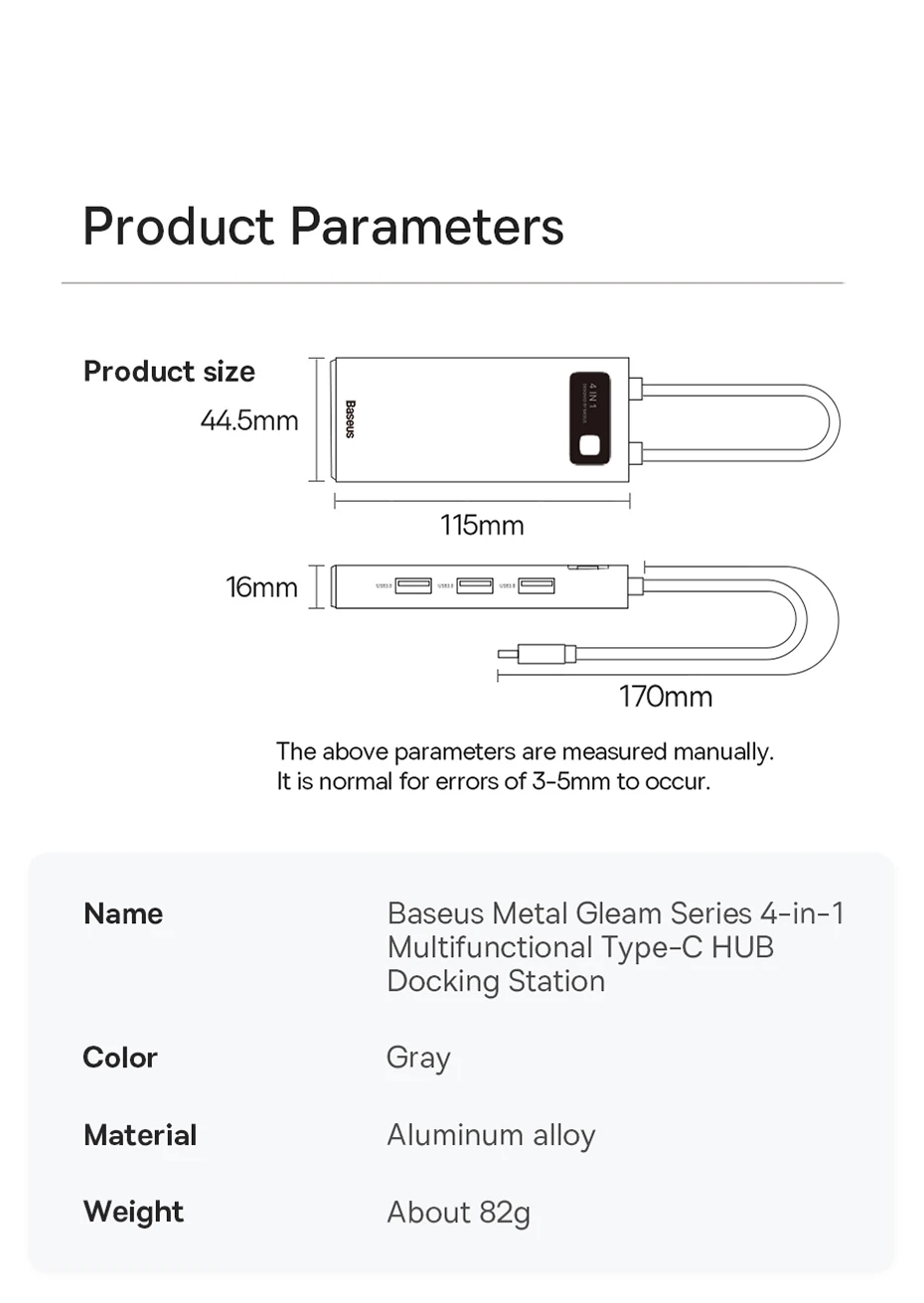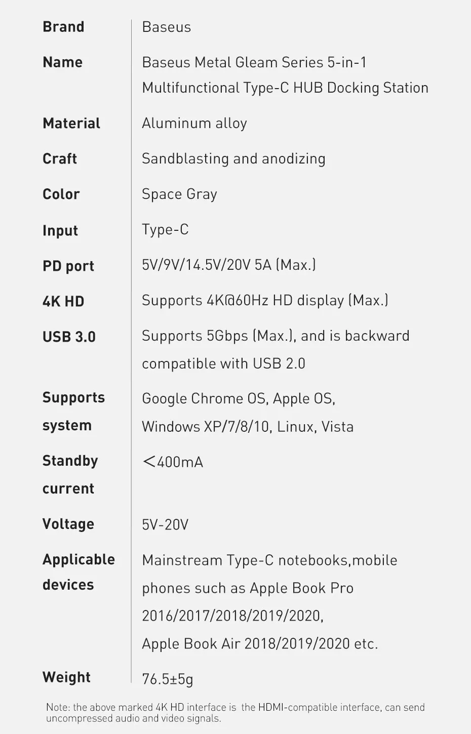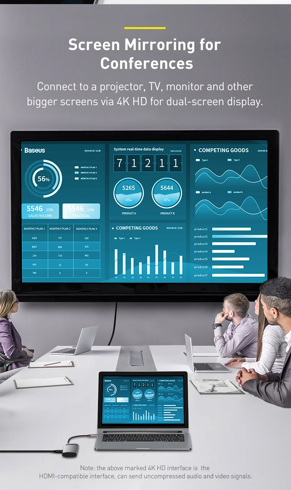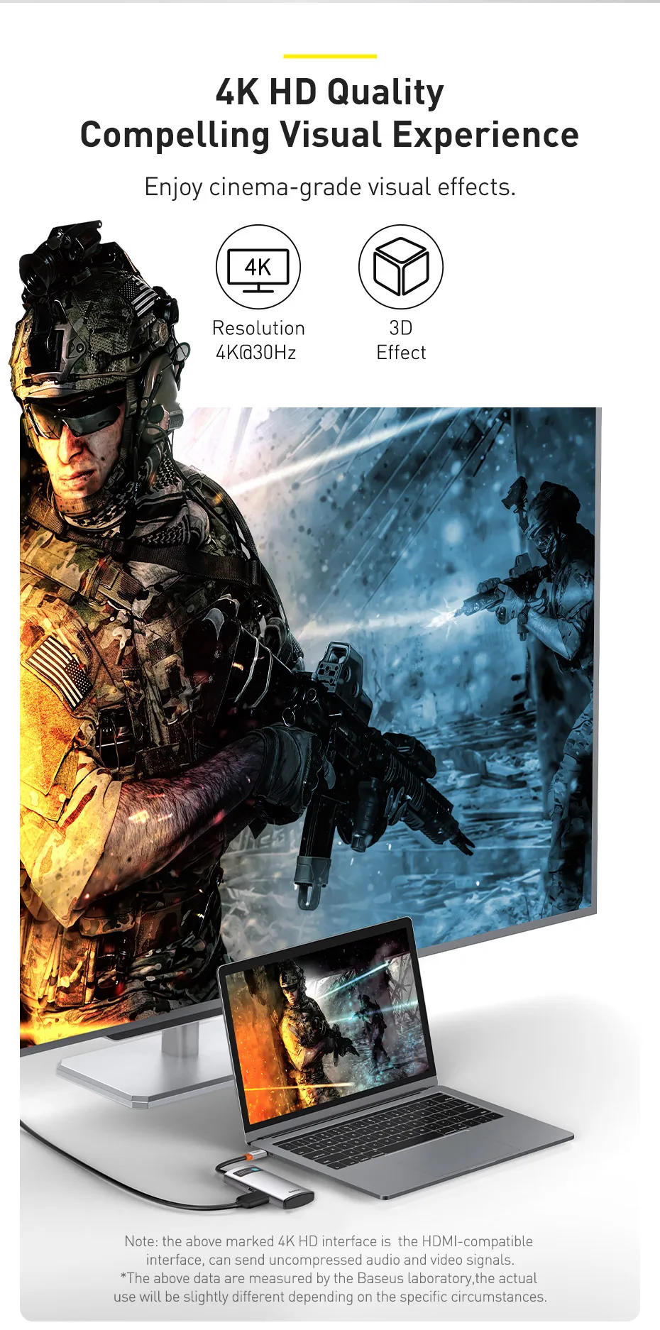 Boost your productivity with the Baseus USB Hub. This versatile device combines the power of HDMI-compatible 4K display, superfast USB 3.0 ports, and high-speed charging with Type C PD 100W. Perfect for MacBook Pro Air M1, enjoy 8/6/5/4 ports in one sleek and compact hub. Get amazing versatility and convenience all in one HUB.
