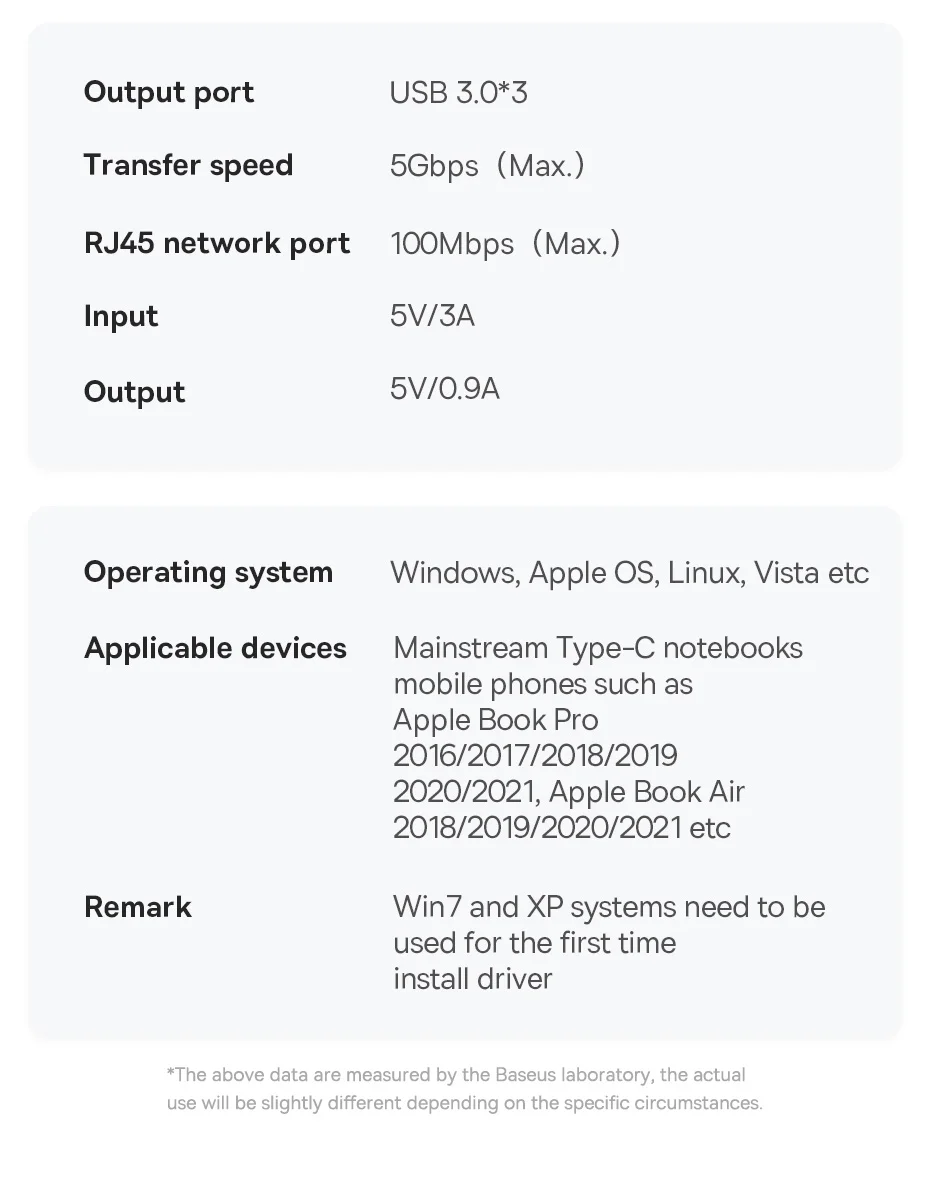 *The above data are measured by the Baseus laboratory,the actual use will be slightly different depending on the specific circumstances.