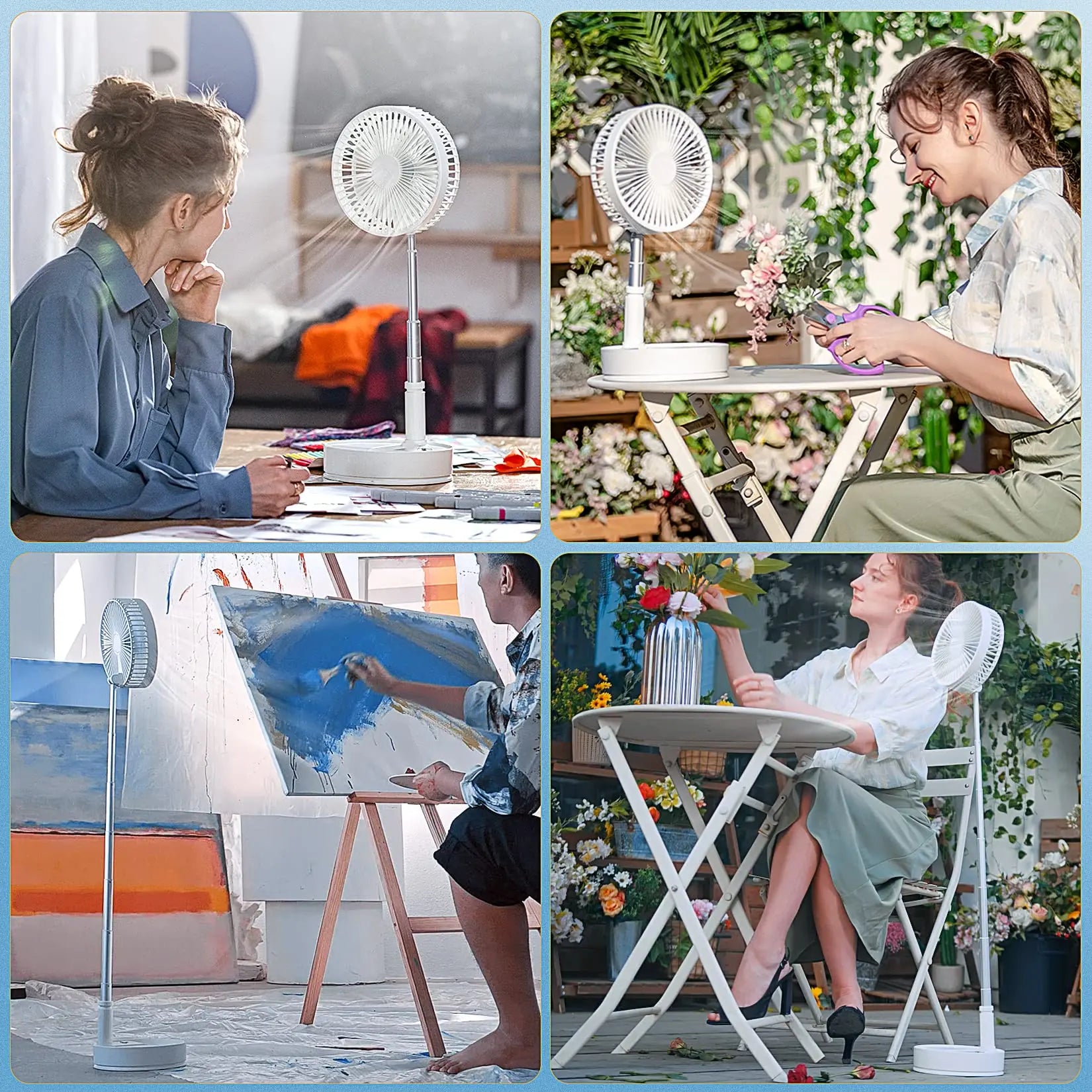 ⭐ Foldable Stand Telescopic Fan: unique folding telescopic design, portable small size, 8" in diameter, adjustable height - 4.1" when folded and 40" full stretched, easily meet your different needs for height. Lightweight (net weight: 860g)